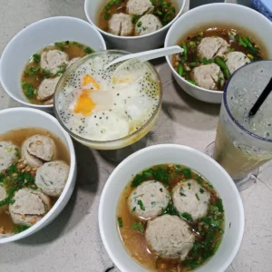 Mang Ono’s meatballs have been around since 2010. Located near the Ngamplangsari Village office, it’s 200 meters from the main road, and visitors must walk to get there. Its signature dish is its generous serving of spicy chili sauce and strong peppery and sour flavors. Its signature dish is the cirawang, also known as aci bawang meatballs. Mang Ono’s meatballs are open from 11:00 a.m. to 5:00 p.m. WIB (Western Indonesian Time), and can be ordered through GoFood or GrabFood.