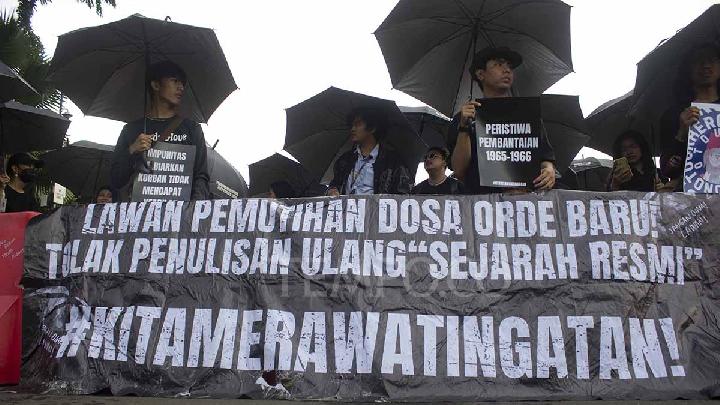 Para peserta aksi, yang mengenakan pakaian serba hitam dan membawa payung hitam, menuntut pembatalan gelar pahlawan nasional bagi Soeharto. Aksi ini selalu dihadiri oleh keluarga korban pelanggaran HAM.