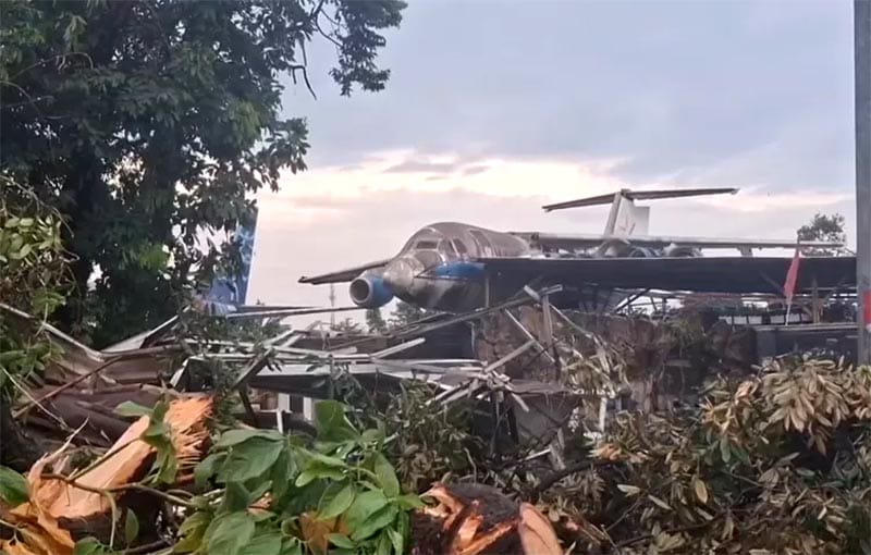 Hujan deras disertai angin kencang melanda Kemang, Bogor, pada Senin, 29 Desember 2025, menyebabkan material pesawat bekas terangkat dan jatuh menimpa beberapa rumah warga. Material pesawat yang tersimpan di sebuah gudang, melayang lebih dari 100 meter sebelum akhirnya tersangkut di atap rumah warga. Kejadian ini menambah daftar kerusakan akibat bencana alam tersebut, termasuk pohon tumbang dan bangunan rusak.